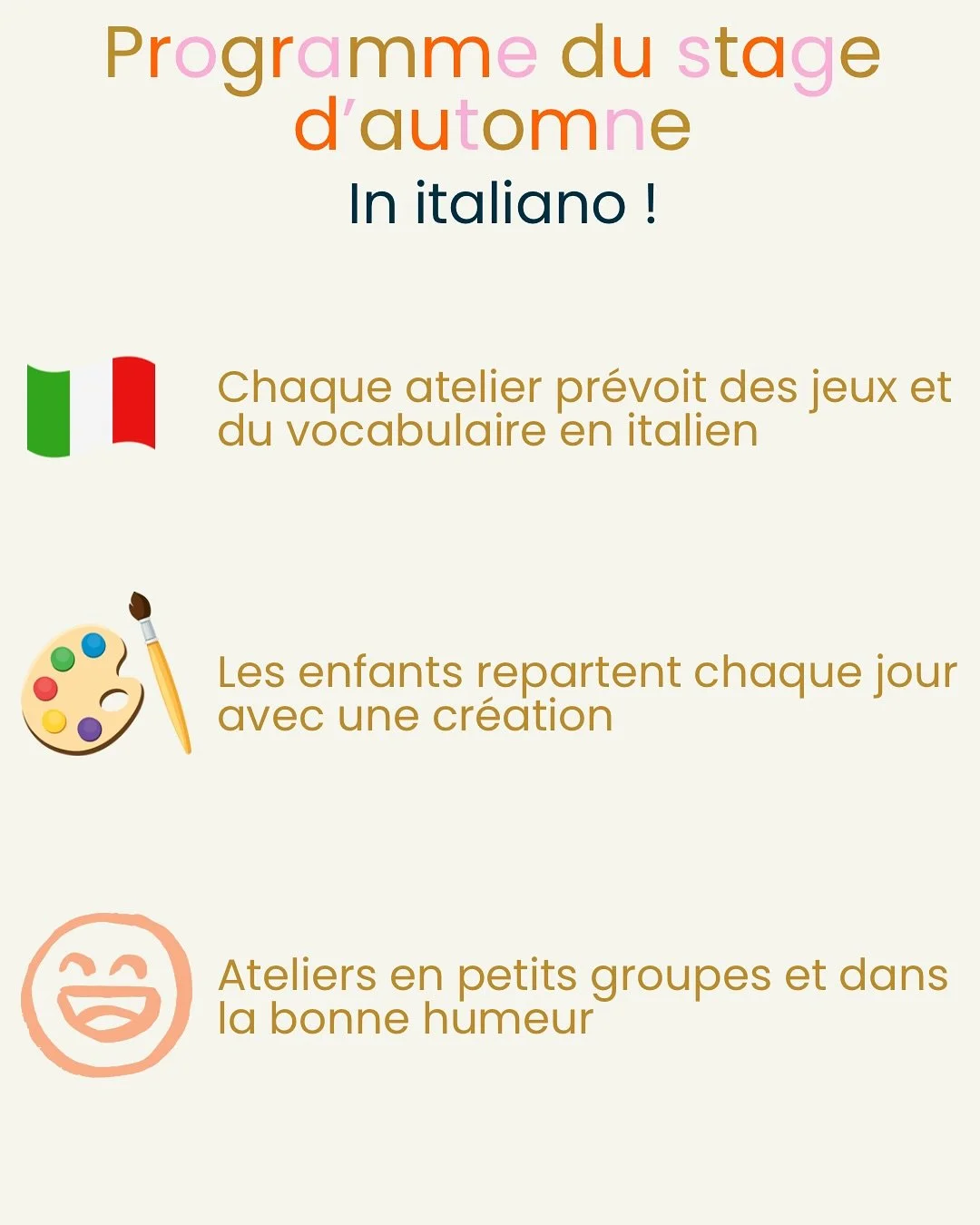 Différentes formules pour accompagner votre enfant, en Italien ou en Français.